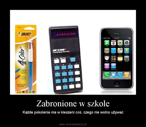 Przygotowując dzisiaj prezentację o mobile learningu, zacząłem się zastanawiać, czy za moich szkolnych lat też było coś, co w szkole było zabronione. No i oczywiście. Telefony komórkowe były raczej rzadkością, bo dopiero stawały się popularne, ale przecież nie wolno było korzystać z kalkulatora, ani pisać kolorowymi długopisami. Wniosek jest prosty – każde pokolenie uczniów ma coś, czego używać nie wolno i to nie wolno dla zasady. Nie wolno, bo nie.