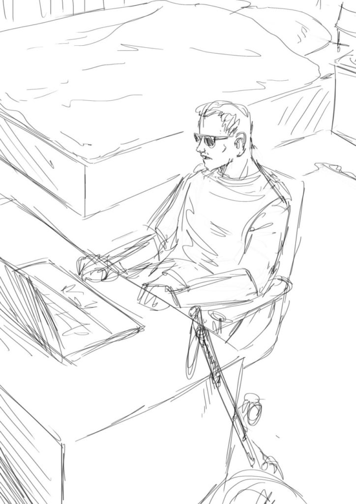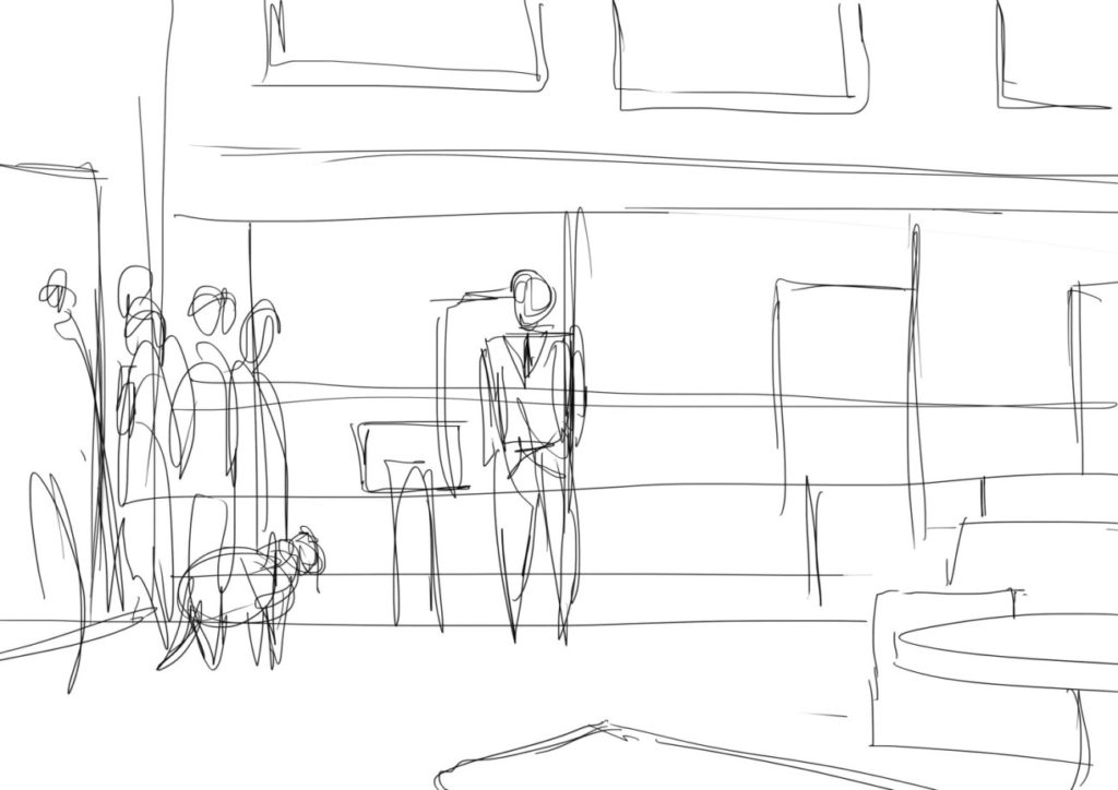 Zaczynamy więc z tekstem, który w sposób bardzo sugestywny chcemy sprzedać naszemu klientowi. Niestety on nie zawsze ma tak samo sprawny aparat odpowiedzialny za wyobraźnię i musimy się powtarzać, zmieniać i nanosić korekty, a tego nikt nie lubi. Właśnie w tym momencie możemy, a w zasadzie powinniśmy wykorzystać rysownika, który na podstawie tekstu scenarzysty stworzy bardzo ogólne szkice.